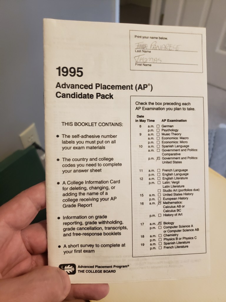 The test book for my AP tests and the admission tickets to the SAT. Yeah, I have no idea why I kept these. Did I really need to commemorate the AP bio exam?