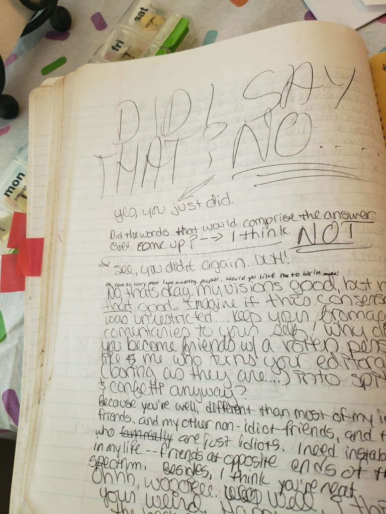 I struggle sometimes with past embarrassments. In recent years, my brain has often had fun with them, bringing up embarrassments or wrongdoings at any random opportunity, as if someone out there is keeping score of all of it. Going back trhough these made me a little anxious. But this was cathartic and more fun than I thought it would be. And I’m curious as to what the notebooks from college hold.