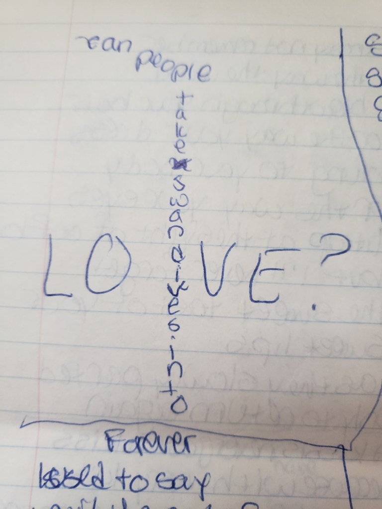 Now, there’s a good portion of these two notebooks that is unremarkable, and I’m not just saying that in a self-depricating or humblebrag sor tof way. Mrs. Taber had required entires and exercises, so there are quite a bit of those, along with quotes that I would collect and Far Side cartoons. When I branched out to “do my own thing” beyond the journals, that’s where it gets interesting. Mrs. Taber would read every entry and leave comments and Post-Its. Reading them thirty years later (and she has since passed on) made me laugh because it was like we were having a bit of a conversation. Plus, she didn’t pull punches and to this day, I appreciate her candor.