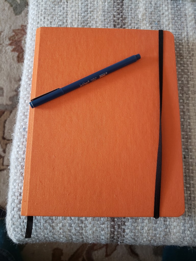 There’s no special method to my journaling. I simply sit down and write whatever is on my mind for five or ten minutes in the morning, sometimes longer on the weekends. I also bring it to my therapy appointments to reference it and use it for taking notes. It is a nice journal, though, so there’s that.